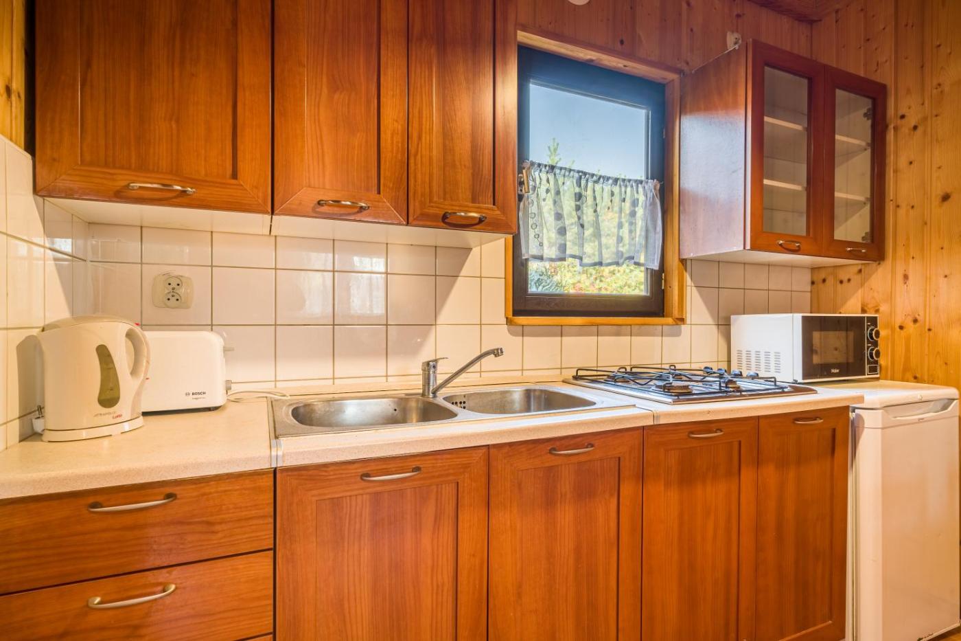 Dom z 2 sypialniami. Featuring a private entrance, this holiday home also comprises 1 living room, 2 separate bedrooms and 1 bathroom with a shower. Guests will find a stovetop, a refrigerator, kitchenware and a microwave in the fully equipped kitchen. The holiday home also provides guests with a barbecue. This holiday home is comprised of a dining area, a flat-screen TV with cable channels a seating area and a terrace. The unit offers 5 beds. Dom wakacyjny - 8 osobowy. Powierzchnia pokoju ok.: 60 mkw. ;