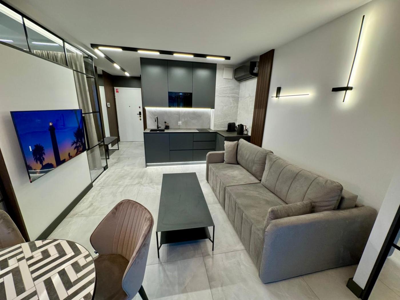 Apartament z 1 sypialnią i balkonem z widokiem na morze. This apartment comes with 1 living room, 1 separate bedroom and 1 bathroom with a shower and free toiletries. The fully equipped kitchenette has a stovetop, a refrigerator, a dishwasher and kitchenware. The air-conditioned apartment features a flat-screen TV with cable channels, a tea and coffee maker, a wardrobe, a safe deposit box as well as sea views. The unit has 2 beds. Apartament - 4 osobowy. Powierzchnia pokoju ok.: 36 mkw.