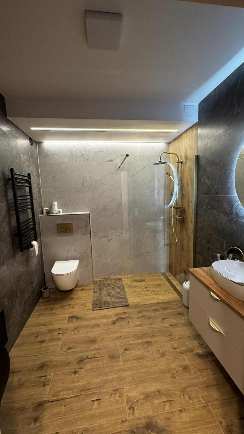 Apartament typu Studio z tarasem. Offering free toiletries, this studio includes a private bathroom with a shower, a hairdryer and slippers. Guests can make meals in the kitchen that is fitted with a stovetop, a refrigerator, a dishwasher and kitchenware. This studio features a washing machine, a dining area, a flat-screen TV with streaming services and a terrace. The unit offers 1 bed. Studio - 2 osobowy. Powierzchnia pokoju ok.: 27 mkw.