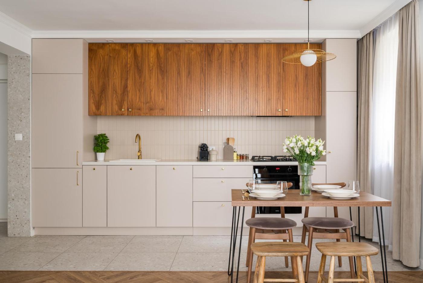 Oferta apartamentu obejmuje kilka sypialni (2), salon, kuchnię z pełnym wyposażeniem, w tym lodówką i ekspresem do kawy, a także łazienkę (1) z wanną oraz bezpłatnym zestawem kosmetyków. W apartamencie zapewniono ręczniki i pościel.
