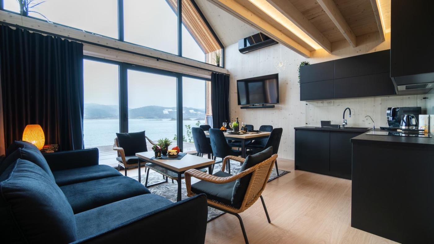 W domu wakacyjnym z 2 sypialniami zapewniono salon z telewizorem z płaskim ekranem, kuchnię z pełnym wyposażeniem oraz łazienkę (1).